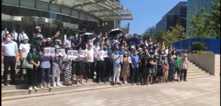 9月1日,泰禾北京院子二期(下称:北京院子)数十名业主聚集在中国华融总部,在太阳的暴晒下,站在大楼门口的业主们有的撑起了伞。