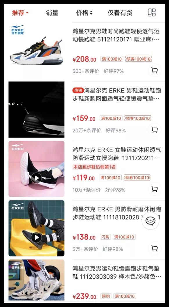 《凤凰WEEKLY财经》记者搜索鸿星尔克京东旗舰店发现,鸿星尔克的产品,大多数都在100-200元。