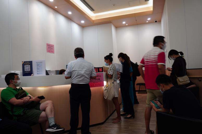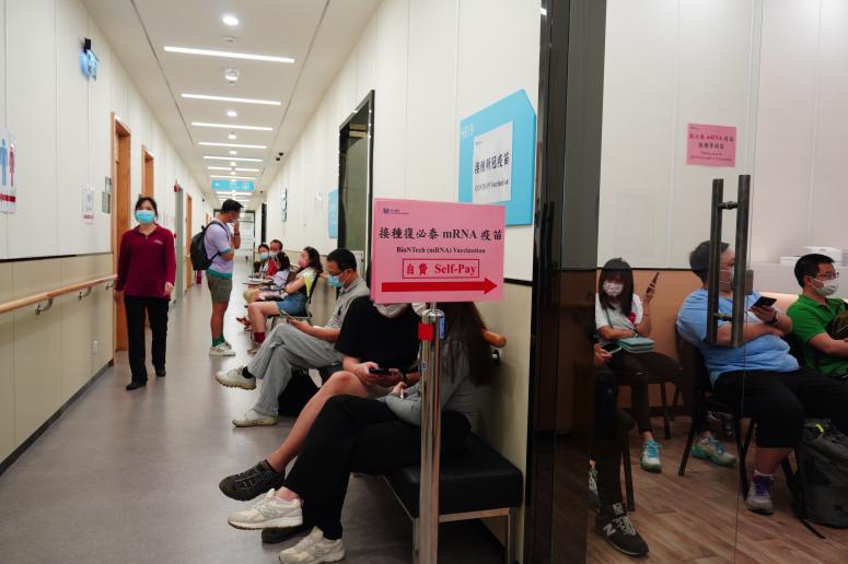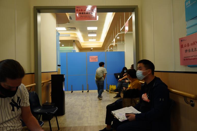 2022年10月3日,澳门科大医院6楼,等待注射mRNA疫苗的内地游客。