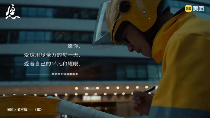 这一切普通人的生活和期盼,在特殊时期,都显得那么难能可贵。2022,每个人都在用力地活着,他们努力求职、努力求学、努力生活的模样,应该永远的被记住。而这,也是美团与毛不易合作的初衷,希望《愿》这部温暖、治愈、励志的音乐短片,能够鼓舞每一位在这一年中仍然挺身向前的人,奔向更好的2023。