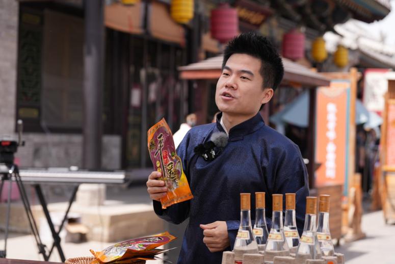 2023年5月20日,“东方甄选”在太原古县城举办山西专场。图为董宇辉讲解平遥牛肉。