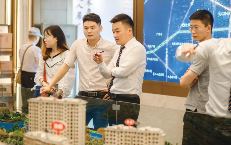 2019年6月22日,芜湖,在伟星某楼盘的售楼处内的购房者。