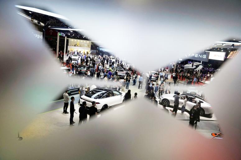 2023年4月19日,人们参观中国上海车展上的小鹏汽车展位。