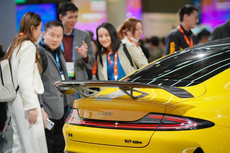 小米SU7超级电动汽车。曾经对特斯拉趋之若鹜的中国车主正日益转向本土品牌,这些品牌提供更高效、更高科技的汽车,有时价格只有特斯拉的一半。