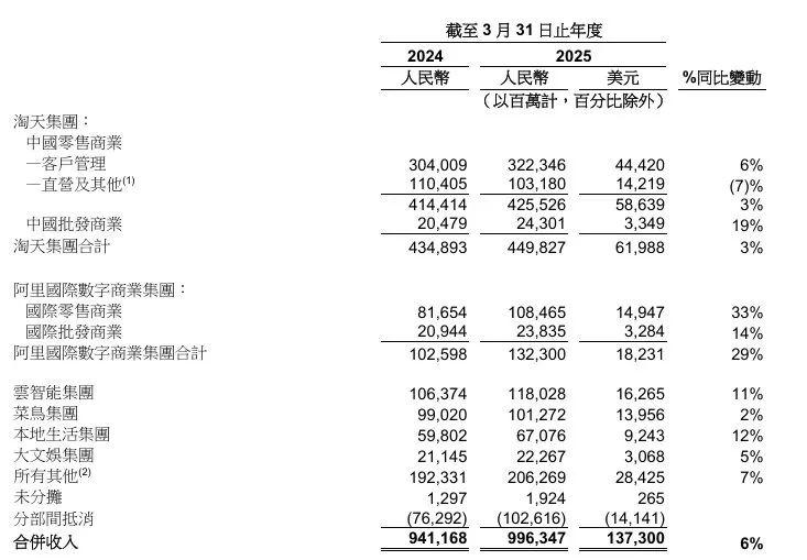 2025财年阿里各板块营收截图