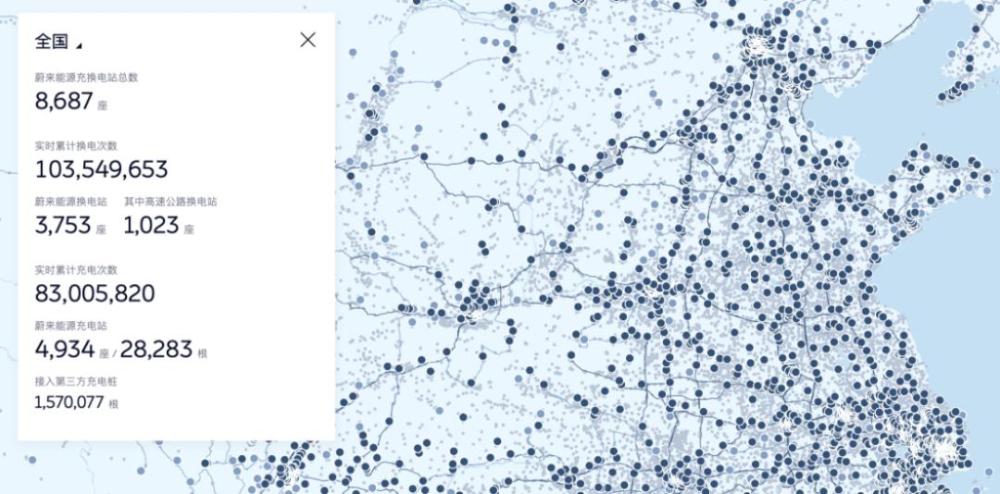 当年换电站还没有如今这般密集,而现在,Gary打开手机,让母亲看了一眼蔚来APP里的加电地图——全国各地的换电站密密麻麻的,像便利店一样随处可见。车机还能自动规划换电路线,完全不用操心。