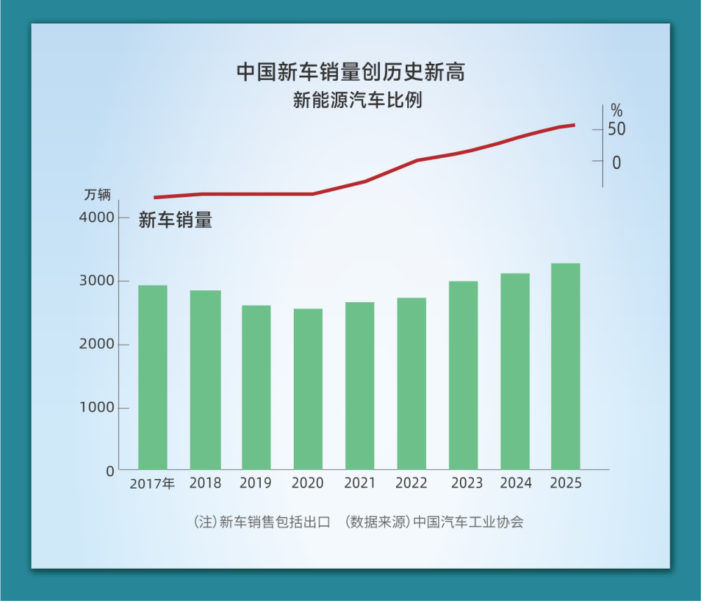 1月14日,中国汽车工业协会发布2025年新车销量(含出口)为3440万辆,比2024年增加9.4%。连续五年增加,刷新历史最高纪录。新兴的浙江零跑科技和小米实现增长,而大型车企比亚迪等增长放缓,竞争依然激烈。