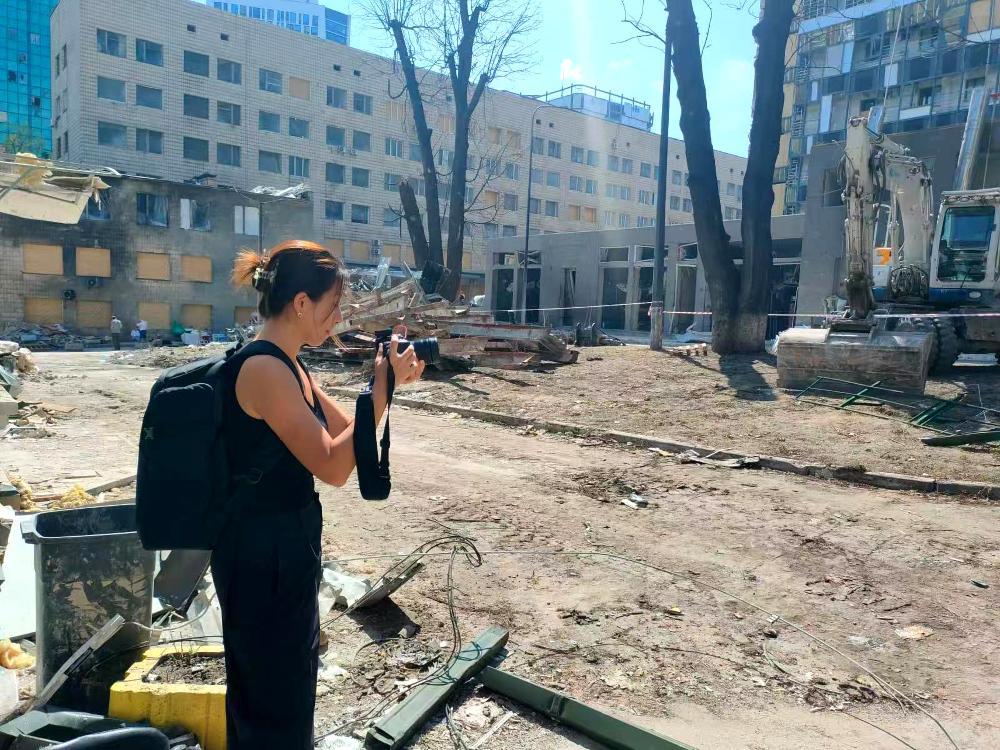 2024年7月,乌克兰基辅,凤凰卫视记者刘备实地走访遇袭的儿童医院。