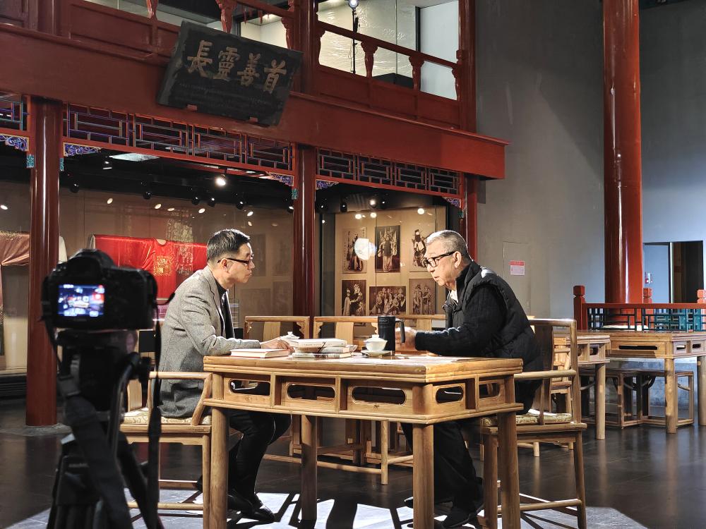2021年12月,首都博物馆梨园展厅。凤凰卫视中文台《文化大观园》栏目专访时年81岁的《大宅门》导演郭宝昌(已故)。