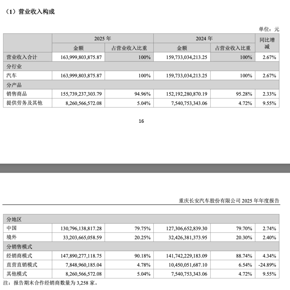 从营收结构看,经销商模式为长安汽车贡献了90.18%的营收,直营直销模式的营收贡献度只有4.78%,说明长安汽车对传统经销商体系依赖度依然较高,渠道模式与新势力仍存在明显差异。