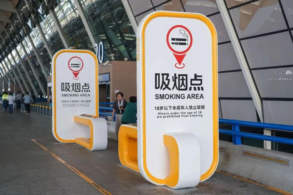 2024年,上海浦东机场二号航站楼的吸烟点。
