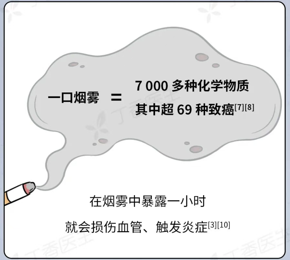 二手烟的危害。(图源:丁香医生)