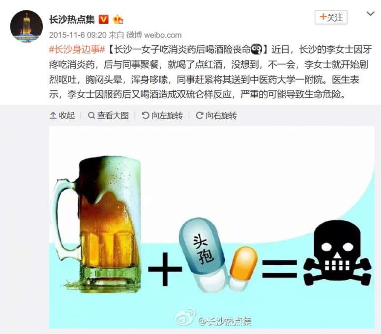 服用头孢等特定抗生素后更不可以饮酒,它们可以“后天”抑制饮酒后乙醛在体内的分解功能,从而引发双硫仑样反应,严重者可致呼吸困难、心律失常、心肌梗死、休克甚至死亡。