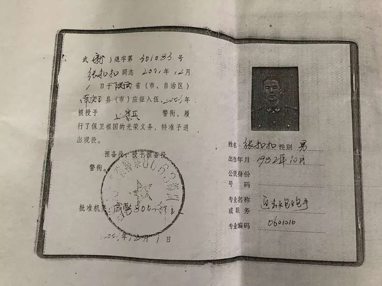 张扣扣的退伍证明