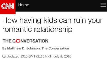 CNN发布了一篇报道,题为《孩子是如何毁掉夫妻间亲密关系的》