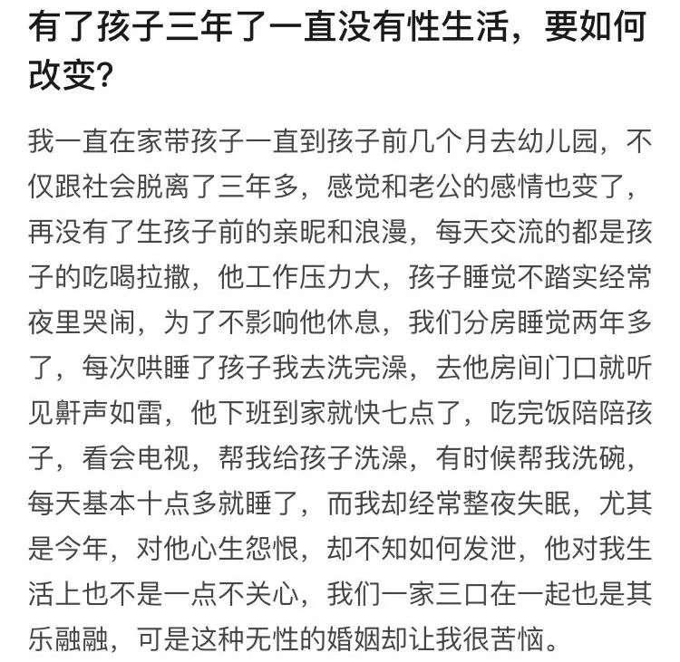 一位中国妻子说得更直白:有了娃,就没有了性生活。