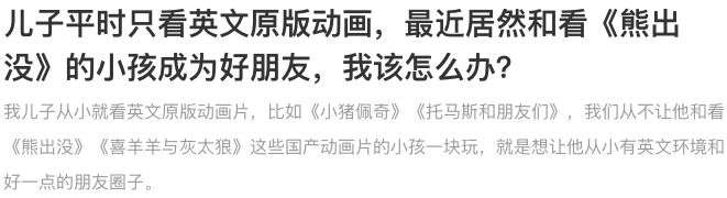 问答社区里,有网友提问:只看英文原版动画的孩子,居然跟看《熊出没》的孩子成了好朋友,怎么办?