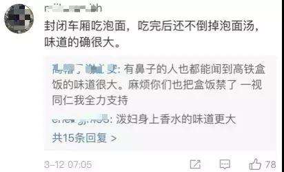 也有网友非常反感在封闭车厢吃泡面的行为,