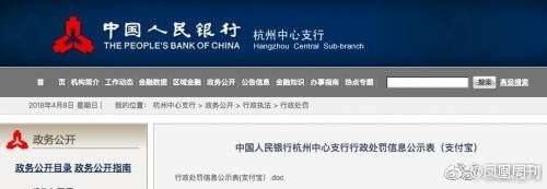 因支付宝涉及金融消费者知情权保障不充分、个人金融信息收集不符合最少必需原则、个人金融信息使用不当等7条违法行为,近日,中国人民银行杭州中心支行对支付宝开出18万元的罚单。