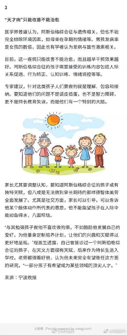 乍一看,8岁的亮亮是个讨人喜欢的小正太。他活泼爱笑,学习成绩也不错。然而,才上小学二年级的他已经被3所幼儿园、8所小学勒令退学,而且每次都是同学家长联名要求,理由是“不适宜行为”。 亮亮患有阿斯伯格综合征,因为牛顿、爱因斯坦等历史名人都为阿斯伯格人士,人们将此症称之为天才病。