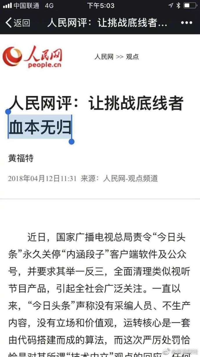 人民网评关停内涵段子:让挑战底线者血本无归