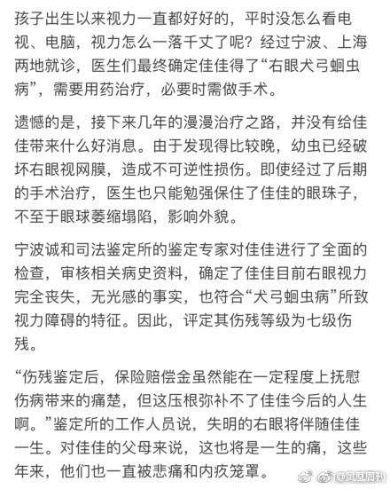 12岁的女孩佳佳(化名)前几天由爸爸牵着走进了宁波诚和司法鉴定所。爸爸提出,要对佳佳的右眼进行伤残鉴定。这位中年男人沉重地说:“孩子的右眼已经完全看不见了,瞳孔也变形了。”