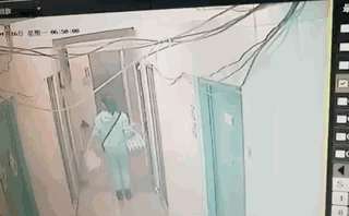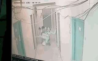 视频中,一女子出门丢垃圾,路过隔壁房间门的时候,房间内突然窜出一个男子,浑身赤裸,只穿一条内裤。