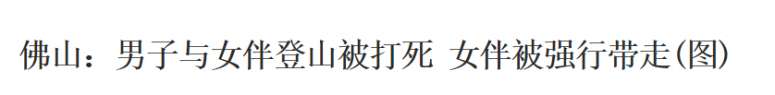 而在广东佛山的一起恶性事件中,男子与女伴在登山过程中被另外两名男子殴打致死。