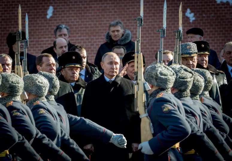 2018年2月23日,在克里姆林宫墙附近的无名烈士墓前,俄罗斯总理梅德韦杰夫,俄罗斯总统普京,和国防部长绍伊古出席了献花仪式。