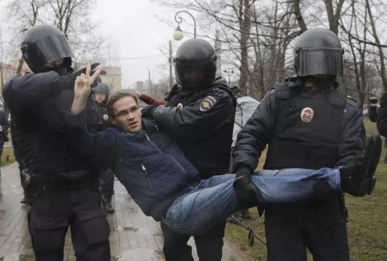 2017年4月29日,反对派抗议活动中的一名参与者被扣留,他抗议普京参与总统竞选的举动。