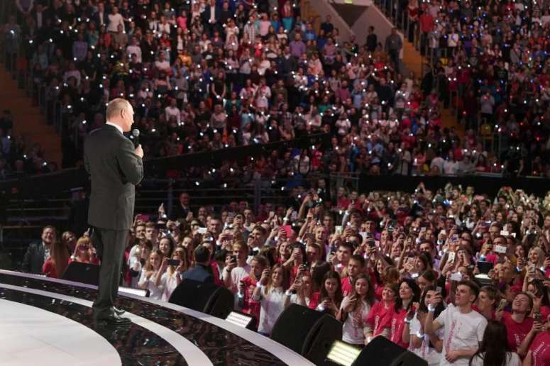 2017年,普京在俄罗斯志愿者大会上演讲。他说,基于公众的支持,他会在2018年的选举中寻求连任。