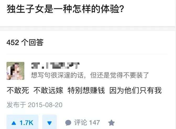 知乎上有一个提问,“独生子女是一种怎样的体验”。