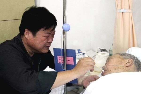 要时刻关注他的生命体征指数、看吸氧管输液瓶的情况,安抚情绪、陪他说话、送餐、擦洗身体……