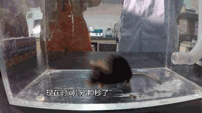 1分40秒后,小鼠开始抽搐,并不断翻倒,似乎无法站稳。