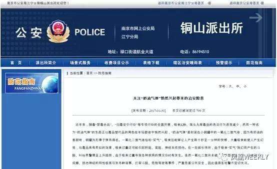 南京警方在官方网站上发布《有关“奶油气弹”悄然兴起带来的治安隐患》
