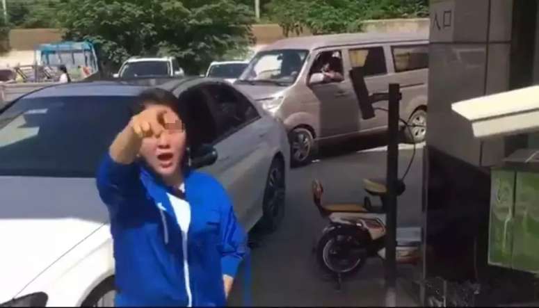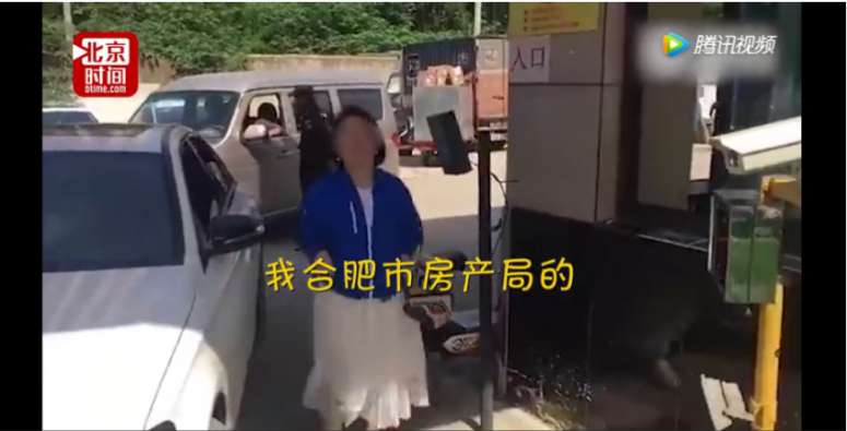 这个被网友戏称为“合肥版严夫人”的女子用车堵门,耀武扬威地冲着保安说: