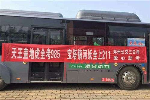 2017年,郑州公交公司特地定制了211,985路公交,在考点门口为考生助考。