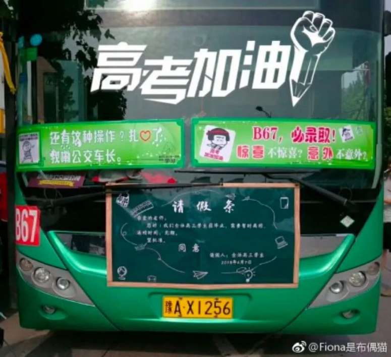今年,公交车公司又出奇招,特意开来一辆贴满表情包,谐音“必录取”的B67路公交车,专程到考场应援。