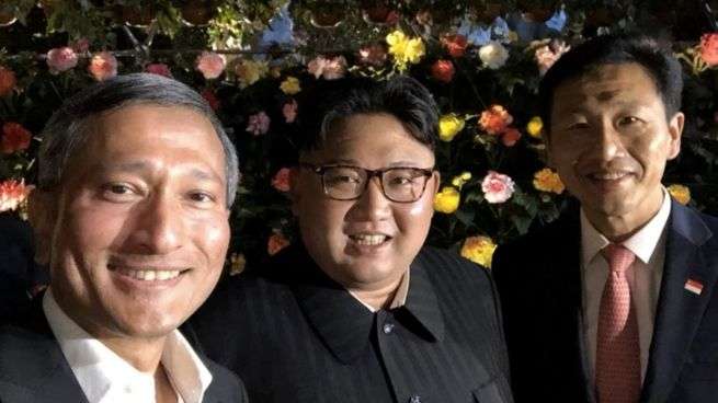 9点42分,此前出访朝鲜的新加坡外长维文在社交网络上发表了一张和金正恩及新加坡教育部长王乙康的自拍,并配文“走走”和“猜这是哪儿?”,脸上泛起的红晕似乎说明三人喝了点小酒。