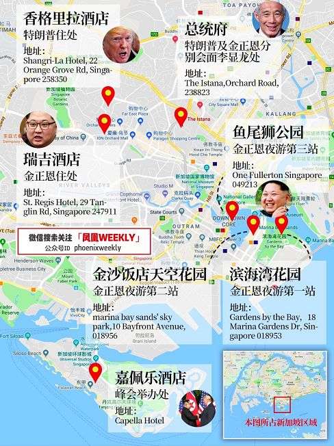 各种细节上,金正恩亦维持着谦恭和平衡。今天早上8点13分,《凤凰周刊》记者拍到,插有两面朝鲜国旗的加长黑色轿车从瑞吉酒店前的唐林路驶过,拐入乌节路。
