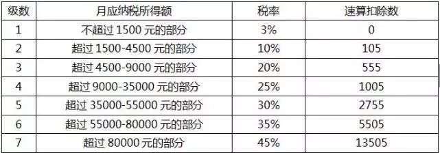 根据我国目前实行的七级超额累进税率,超过起征点越多,应缴的税率也相应越高,具体数值从3%到45%不等。