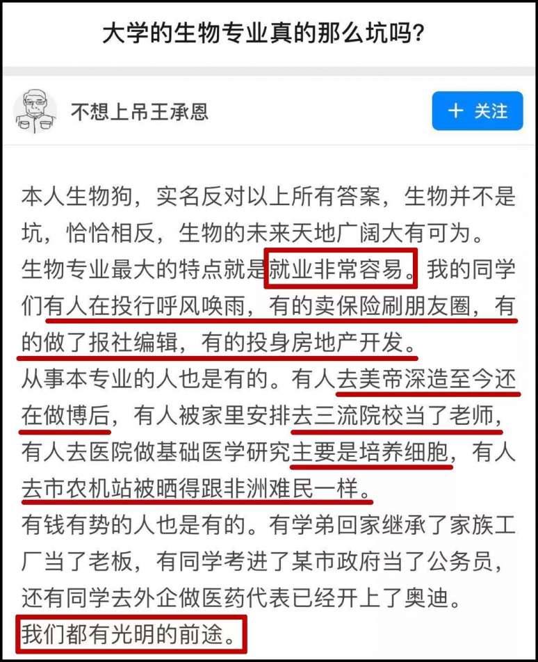 但也有部分同学,对生物学毕业的前景保持乐观心态:我们生物专业,就业还是非常容易的嘛!