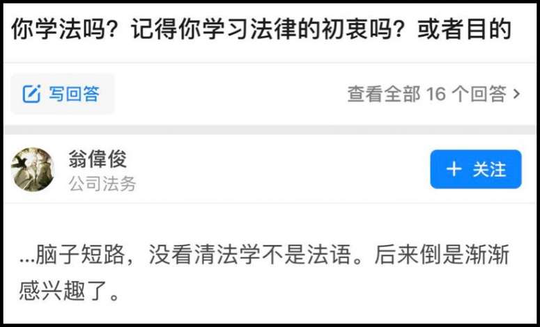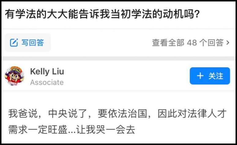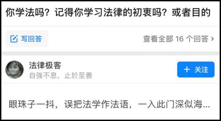 知乎上有人提问:你学法的初衷是什么?