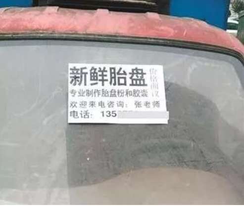 联系街边的小广告,可以轻松地购买到胎盘。头胎男婴600元,头胎女婴400元,多胎300元。