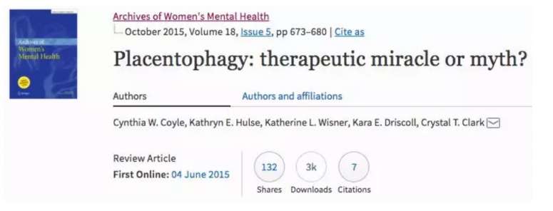 该期刊的研究文章,题为《食用胎盘:能带来医疗奇迹,还是仅仅只是传说?》