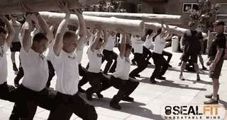 300个圆木深蹲实在完不成,于是新员工们被罚每人做100个俯卧撑、抬圆木绕场跑2000米。