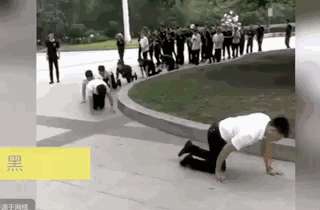 跪着还不够,还得如朝圣般,在人多的广场花坛边,边哭边跪着爬行。