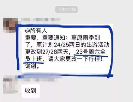 本来户外团建少有的优点之一就是工作日不用上班,结果突然弹出通知:周末补班。