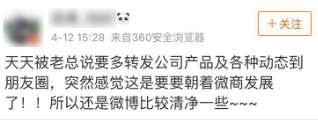 但最烦的,还属朋友圈被公司挟持,条条公司动态都要转到朋友圈。