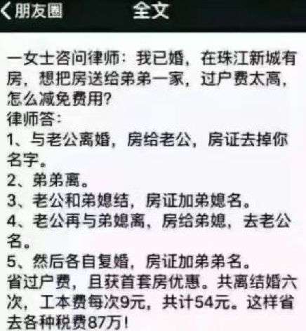 为了减免房屋过户费,先假离婚,再让老公和弟媳假结婚↓
